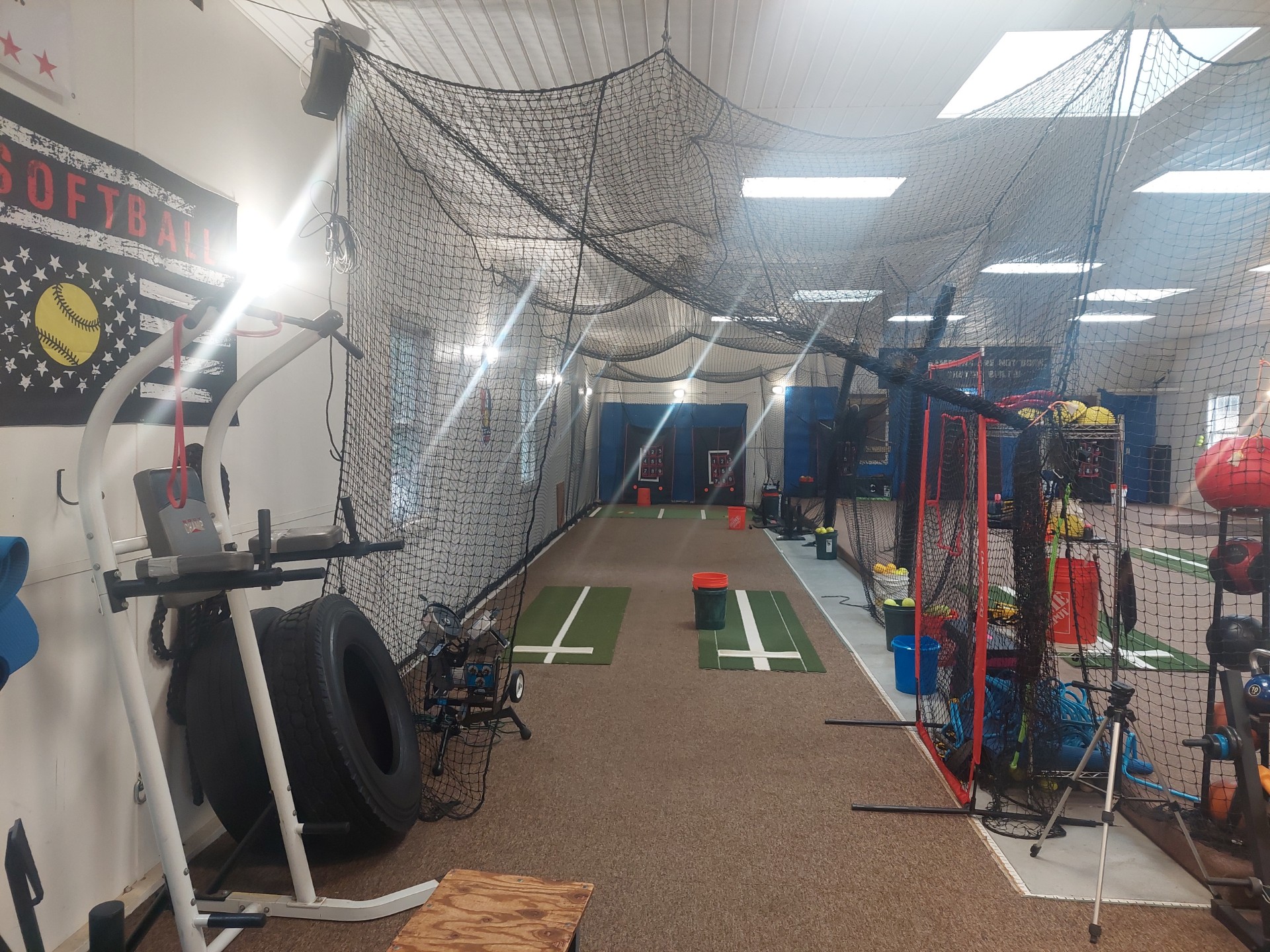 * Batting Cage and Hitting Stations: The center boasts a well-equipped batting cage and six hitting stations, facilitating focused batting practice.